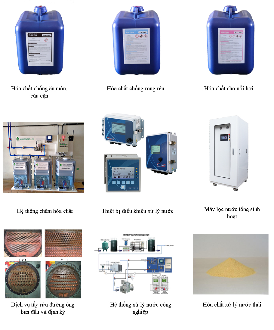 Bên cạnh việc cung cấp những sản phẩm hóa chất chống cáu cặn, ăn mòn cho hệ thống nồi hơi, chống cáu cặn, ăn mòn rong rêu cho hệ thống nước làm mát tuần hoàn, tháp giải nhiệt, công ty Green còn cung cấp dịch vụ kỹ thuật đi kèm như: