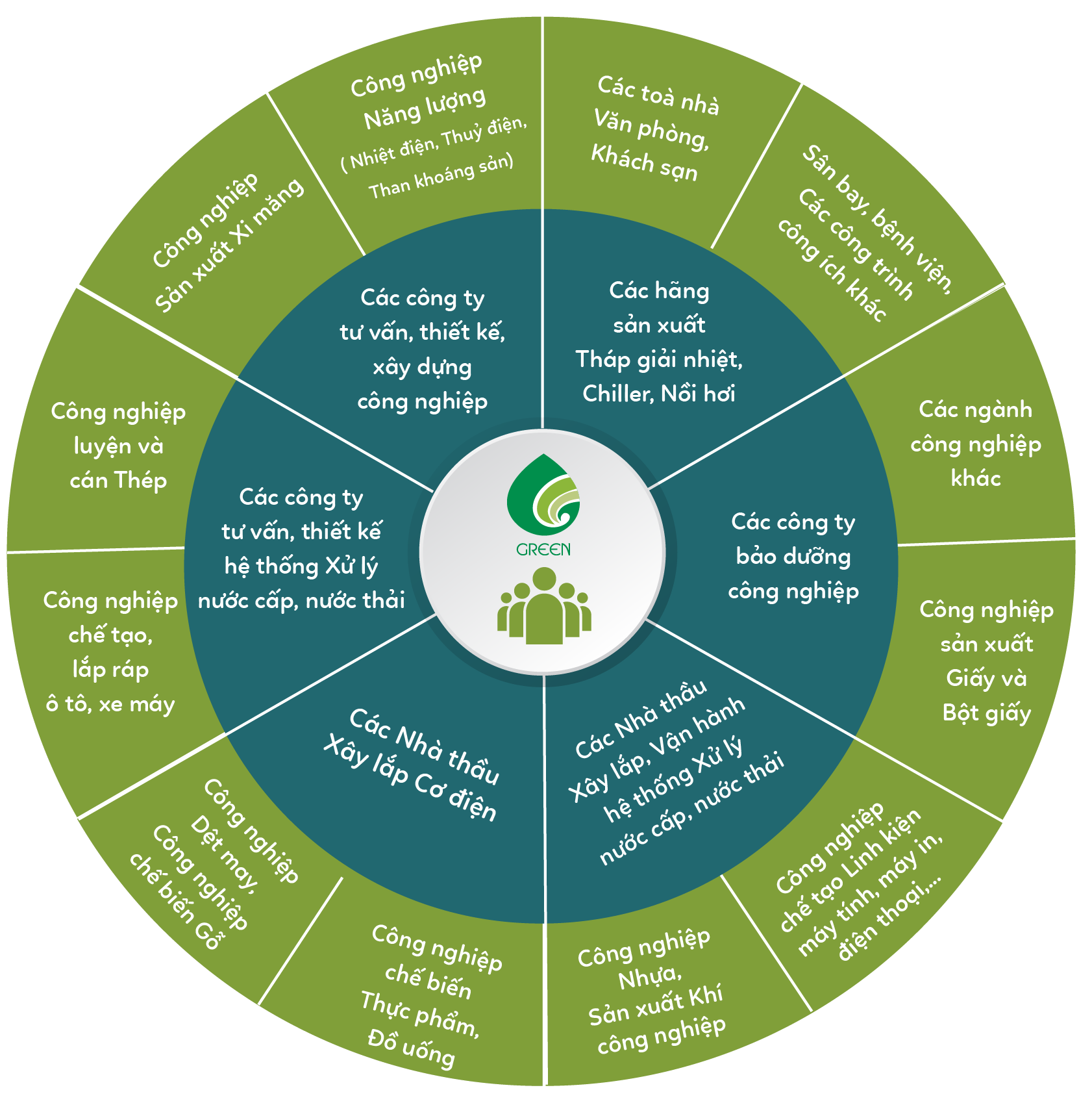 Thị trường nội địa: Kể từ khi thành lập năm 2001 đến nay, Công ty Green đã có cơ hội được hợp tác và cung cấp dịch vụ, sản phẩm hóa chất cho hơn 300 khách hàng thuộc nhiều lĩnh vực như: