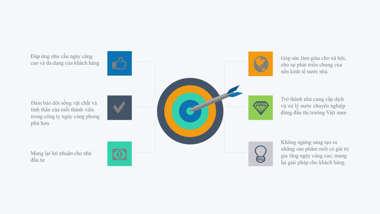 Công ty TNHH Green là một công ty làm ăn ngay thẳng, mong muốn được ghi nhận là nhà cung cấp dịch vụ xử lý nước chuyên nghiệp đứng đầu thị trường Việt nam về chất lượng dịch vụ xử lý nước công nghiệp, đồng thời không ngừng mở rộng các sản phẩm dịch vụ thương mại và đầu tư mang giá trị kỹ thuật cao, hoạt động kết nối thị trường trong nước với khu vực và thế giới.